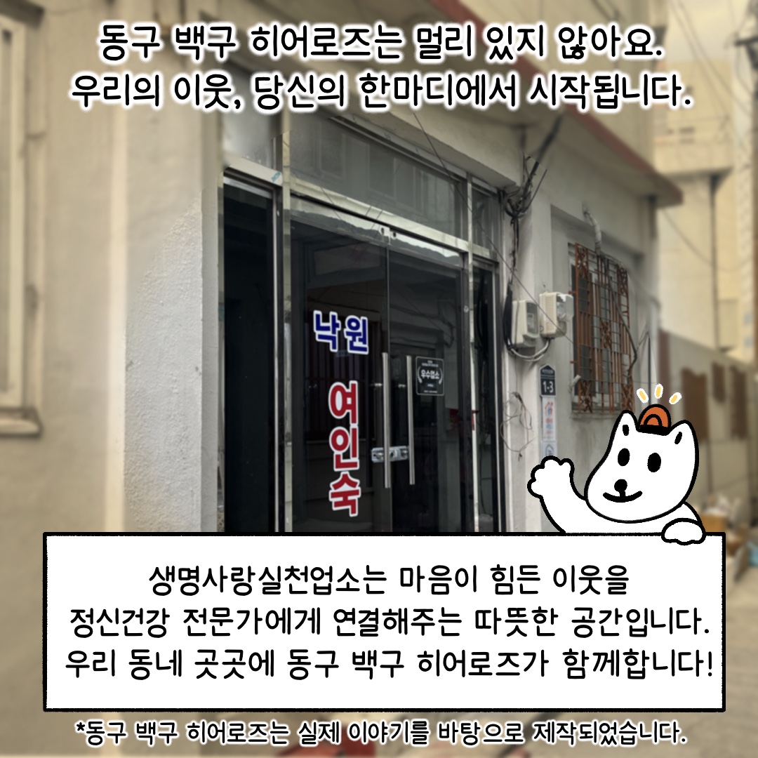 마음이 아프고 힘든 이웃들을 돌봐주시며, 동구정신건강복지센터에 도움을 요청하여