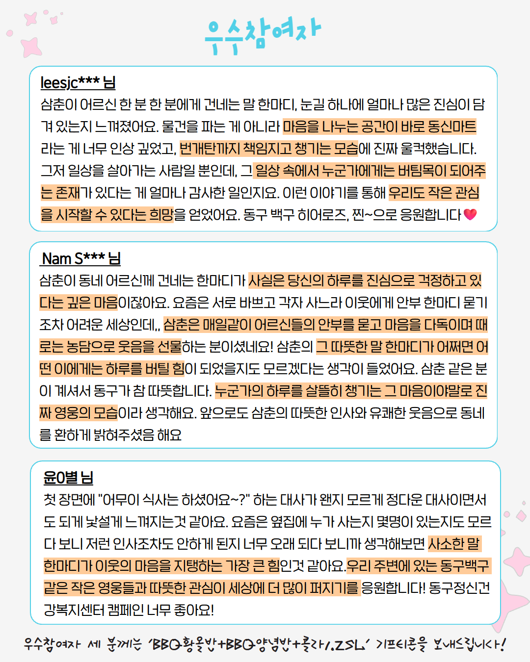 정신건강인식개선 및 자살예방 캠페인 '동구백구 히어로즈' 3화 당첨자 발표