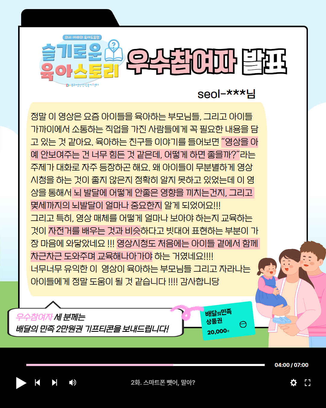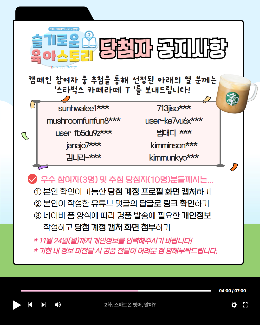 슬기로운 육아스토리 영상콘텐츠 시청캠페인 당첨자 발표!