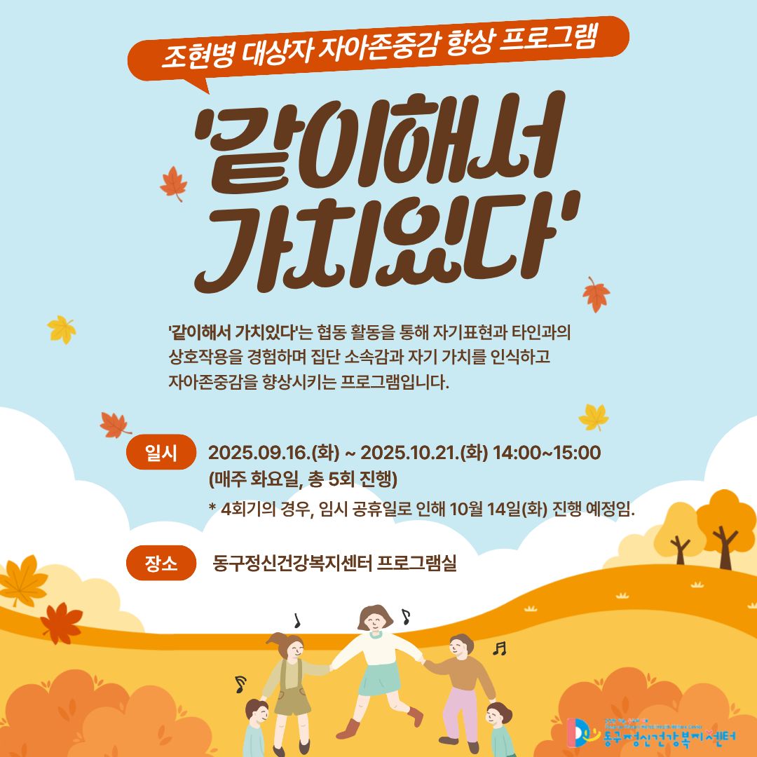 2025년 조현병 대상자 자아존중감 향상 프로그램 '같이해서 가치 있다' 안내