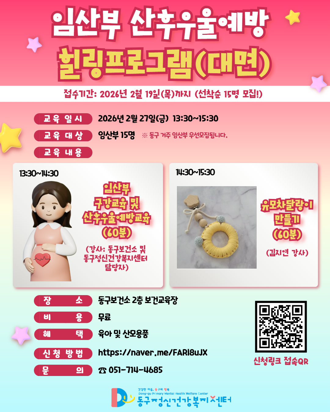 2/27(금) 임산부 산후우울예방 힐링프로그램(유모차 달랑이) 선착순 15명 모집!