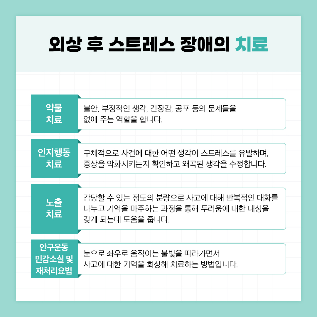 외상 후 스트레스 장애는 초기 발견과 지속적인 치료가 중요합니다.