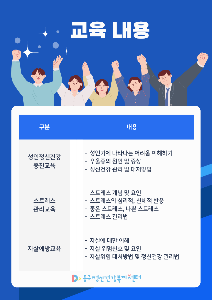 2026년 성인 정신건강증진교육 참여 대상자를 모집합니다.
