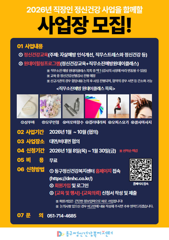 2026년 직장인정신건강사업 '직장 내 어울림법 제 1조' 신청기관 모집 안내